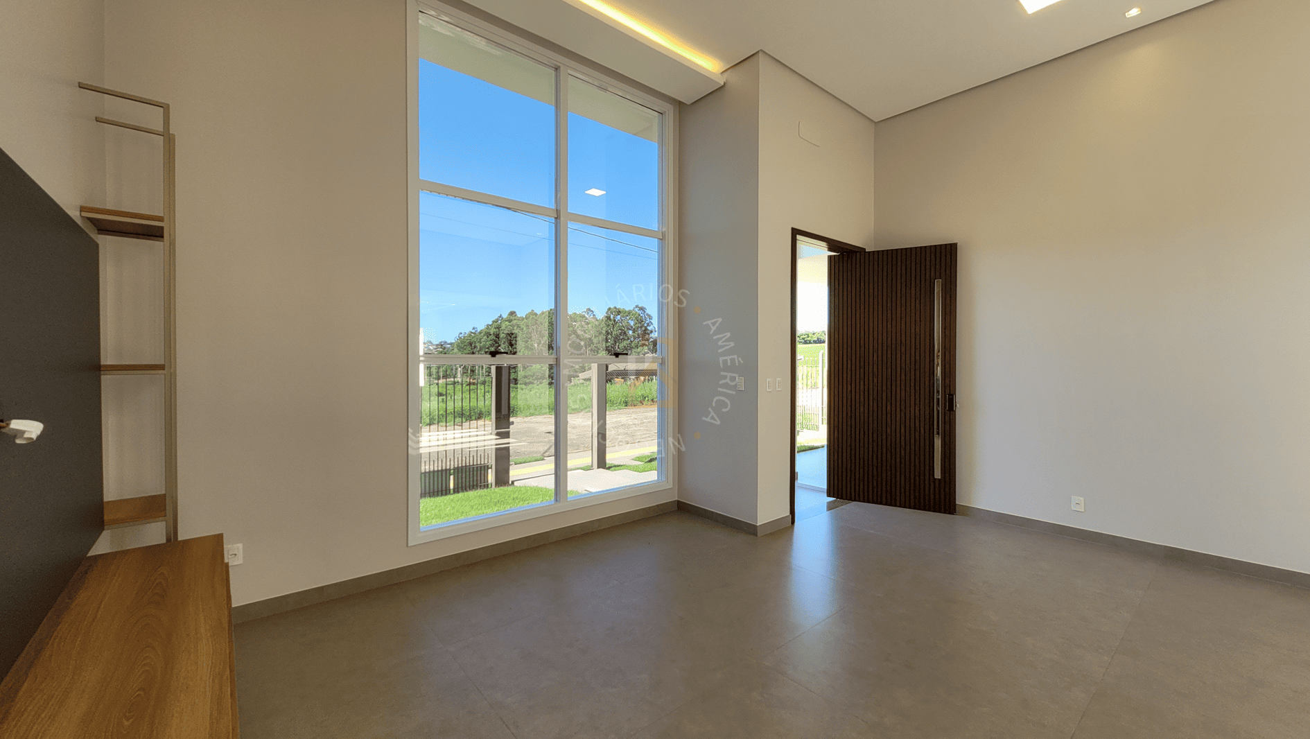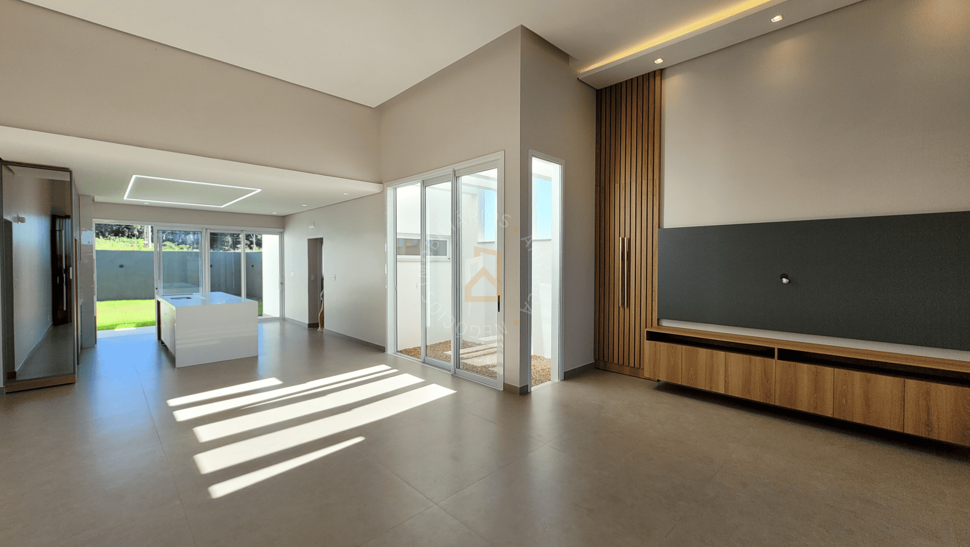 • Sala de estar e TV com pé-direito elevado de 4,30 metros